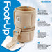 Foot-Up consists of two main parts: an ergonomic ankle strap and a plastic inlay. The plastic inlay fits discretely between the tongue and laces of the shoe and attaches to the ankle strap via a powerful elastic strap. The elastic strap features a quick release clip. The cushioned ankle strap is constructed from a breathable 3-layer material, which can be worn comfortably for long periods of time without causing skin irritation or impeding the foots range of motion.