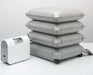If someone falls over and they can shuffle on to the cushion or be rolled on from the recovery position and assisted to sit upright then the Elk can then be inflated at the touch of a button with someone supporting the individual from behind to bring them to a raise seated position ready to stand.