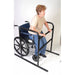 Merry Walker's Portable Parallel Bar is designed to assist the wheelchair user in regaining the function of standing from a seated wheelchair position. The device is ideal in keeping Multiple Sclerosis patients mobile. The user rolls his/her wheelchair to the base of the device and stands up holding onto the front cross bar, practicing weight shifting and stepping in place, and then is able to sit down again in the wheelchair parked directly behind them. The Portable Parallel Bar is constructed of black tubular steel, with arch shaped sides, two front cross rails and two bottom rails which place the weight on the floor and anchor the bar to the ground.