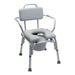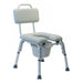 This Deluxe Padded Commode has an open front seat to provide easier access for personal care. The commode is comfortable and the cushioned seat and backrest are water-tight and easy to clean. The anodized aluminum frame is lightweight, durable and rust-resistant. Seat height is adjustable in 1" increments up to 22.5" and is available with or without support arms.