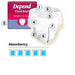 2. Soft leakage barriers guard against side leakage for comfortable protection. Comfortable latex-free elastic waist system provides a better fit at the waist, and the Six EasyGrip™ tabs refasten easily. TheiImproved Ultra ABSORB-LOC® protection quickly absorbs and locks fluids away as it neutralizes odor for the best DEPEND® protection ever!