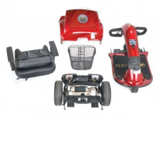 The all-new Companion II three-wheel scooter provides great style with high performance. It is slighly larger than the Golden Companion with an increased weight capacity and longer battery range. Some of the new features include easy disassembly for travel and storage and an adjustable LED headlight for safety. The new ergonomic control panel design features a backlit battery gauge display and a wraparound Delta tiller. The trouble shooting guide conveniently hidden under the floorboard's carpet provides solutions for many fix-it-yourself type problems.