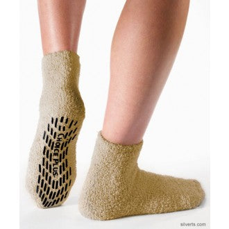 These extra comfortable hospital socks are composed with feather-soft polyester chenille. The socks are also skid-resistant to provide for safer wheelchair transfers.